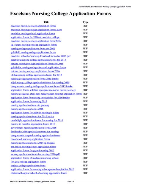 NOW - Read Online Excelsius nursing college application forms rtf Internet Archive